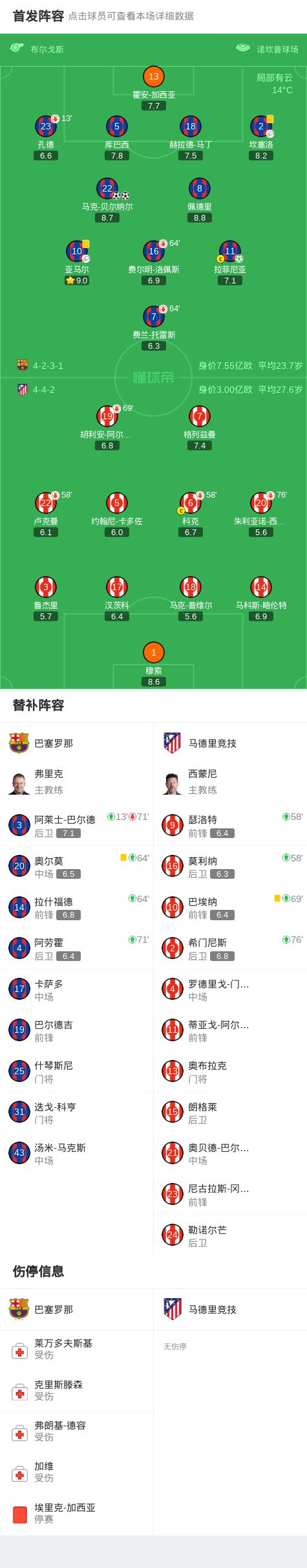 足坛一夜动态:皇马前锋无缘世界杯 巴萨3-4马竞 利物浦惨遭绝杀