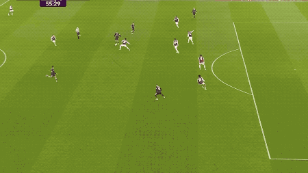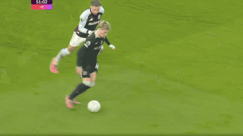 第30分钟,维拉的传跑时机恰到好处,沃特金斯起脚射门,约根森轻舒猿臂,完成封堵。