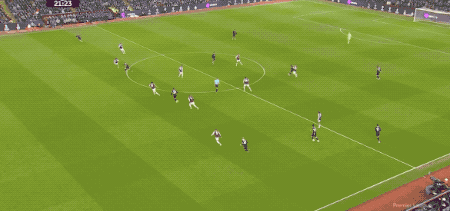 第40分钟,福法纳传球被抢断,维拉前场反击4打1,沃特金斯劲射破门,VAR介入,沃特金斯越位在先,进球无效。