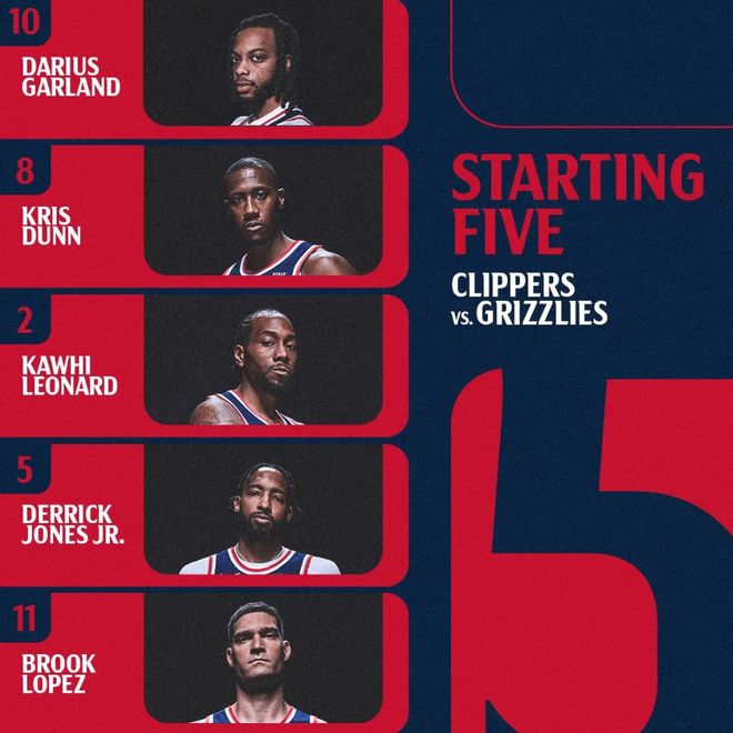 首发阵容方面,快船队这边,科林斯(颈部挫伤)缺阵,比尔(髋部受伤)和中锋尼德豪泽(右脚跖骨损伤)赛季报销,主帅泰伦卢排出的最新首发五人组为:克里斯-邓恩、小德里克-琼斯、科怀-伦纳德、加兰、布鲁克-洛佩斯;尼克斯队这边,麦克布莱德因核心肌肉手术缺阵,首发阵容为:布伦森、布里奇斯、哈特、阿奴诺比、唐斯。