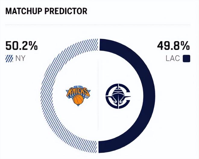 赛前,美媒ESPN对本场比赛进行了胜率预测,快船队胜率49.8% ,尼克斯胜率则为50.2% , 算是平分秋色。